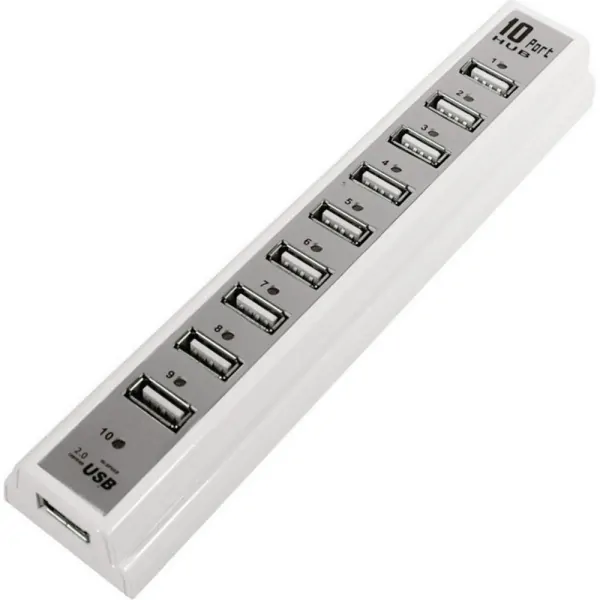 Du kan tilslutte op til 10 USB enheder til computeren med denne praktiske USB hub i hvid farve.