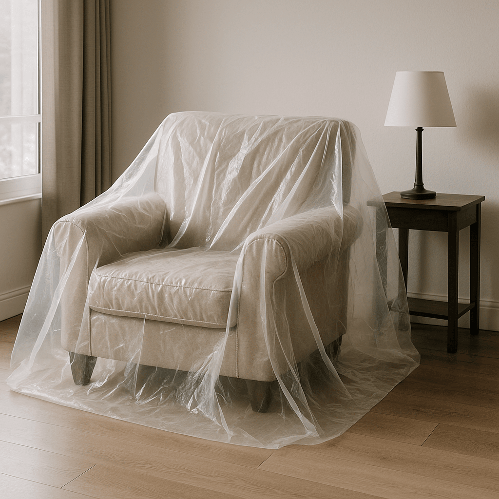 Afdækningsplast 4 x 5 meter, transparent (7 micron)en praktisk og gennemsigtig plastfolie, som gør det nemt og hurtigt at beskytte møbler, gulve og andre overflader under malerarbejde, renovering eller flytning.