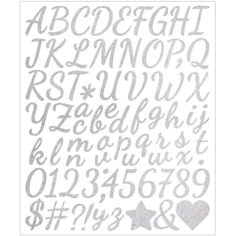 Alfabet klistermærker med flotte bogstaver, tegn og tal. Store og små bogstaver. A til Z. Silver –