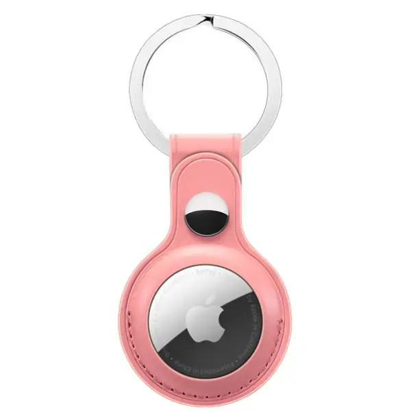 Lækker og praktisk Apple AirTag læder nøglering. Lyserød.
