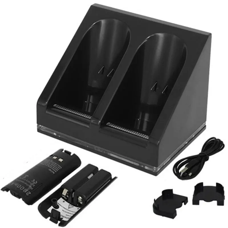 Bordlader til 2 stk Wii Remotes inkl 2x 2800mAh batterier. Sort.