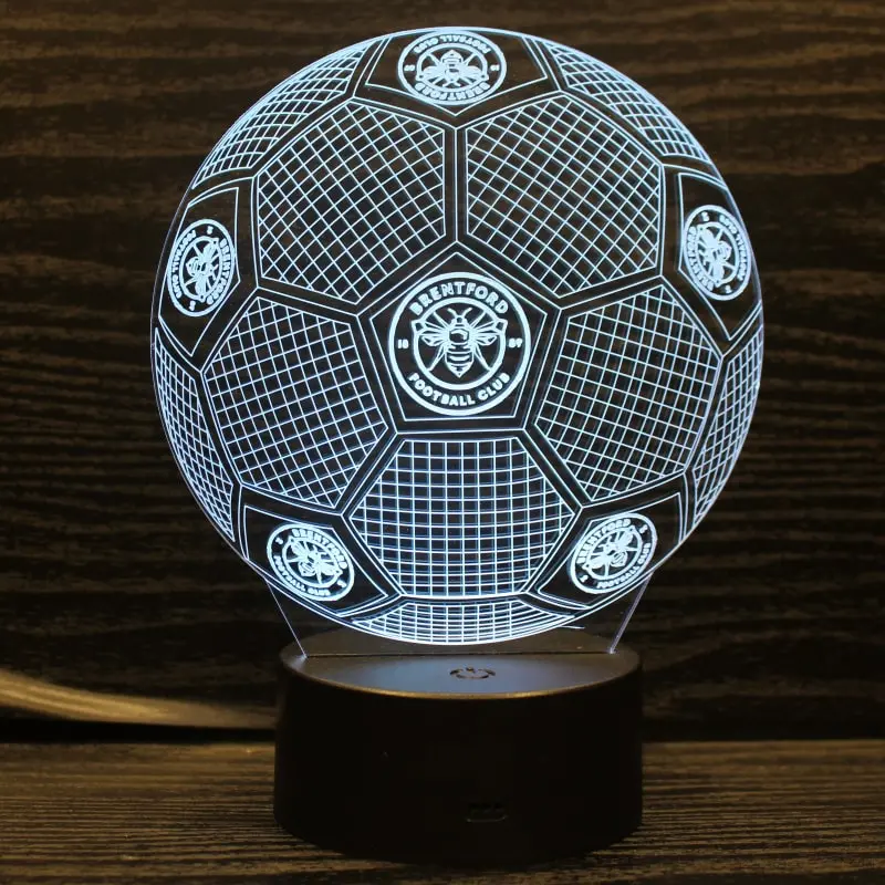 Rigtig flot Brentford 3D lampe med Brentford FC’s logo lysende i en flot fodbold.