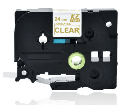 Brother TZE154 P-Touch bånd Guld på gennemsigtig tape 24mm x 8m kompatibelLængde: 8 meterBredde: 24 mmFarve: Guld Tekst på Genemsigtig Tape