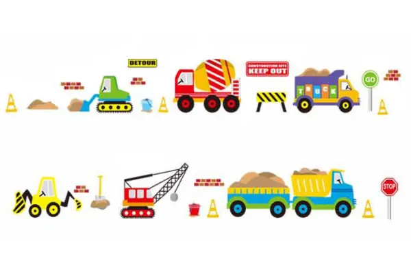 Den helt rigtige byggeplads wallsticker til børneværelset, hvis man er fan af Byggemand Bob eller blot elsker gravkøer, kraner o.lign.