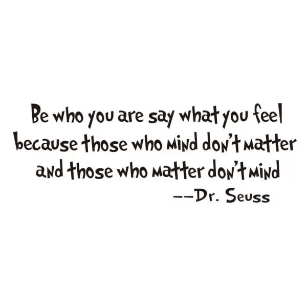 Poetisk wallsticker med et meget betydningsfuldt og stærkt citat fra Dr. Seuss.