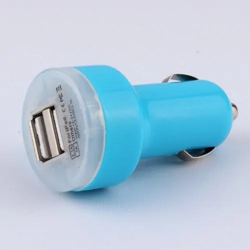 Dual USB billader til telefon, tablet mm. Blå. –