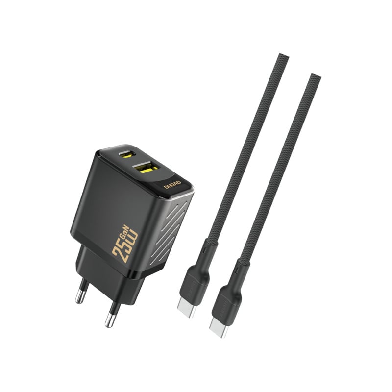 Dudao A26TC GaN 3A 25W Dual USB oplader. Inkl. USB-C kabel. Sort –