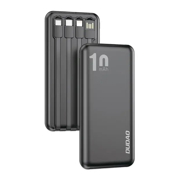 Praktisk DUDAO K6Pro Powerbank med 4 forskellige stiktyper, så den passer til alle smartphones og tablets.