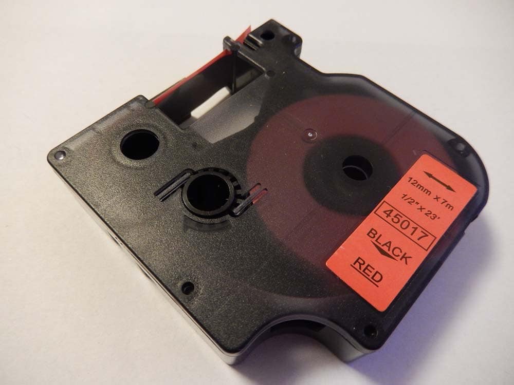 Dymo 45017 D1 sort på rød tape – Kompatibel S0720530 – 12mm x 7m passer til: Dymo Labelmaker 4500 | Dymo Labelmaker PC 10 | LabelMANAGER 100P | LabelMANAGER 120P | LabelMANAGER 150 | LabelMANAGER 160 | LabelMANAGER 200 | LabelMANAGER 210D | LabelMANAGER 2