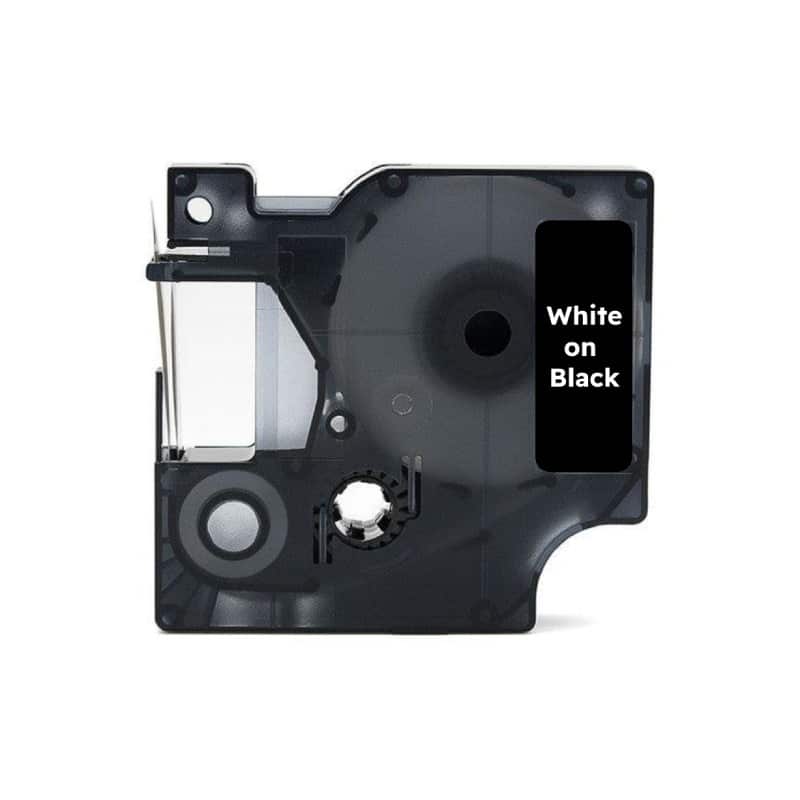 Dymo 53721 hvid på sort tape – Kompatibel S0721010 – 24mm x 7m passer til: LabelMANAGER 120P | LabelMANAGER 210D | LabelMANAGER 220P | LabelMANAGER 350D | LabelMANAGER 420P | LabelMANAGER 450 Duo | LabelMANAGER 500TS | LabelMANAGER PC | LabelMANAGER PC 2