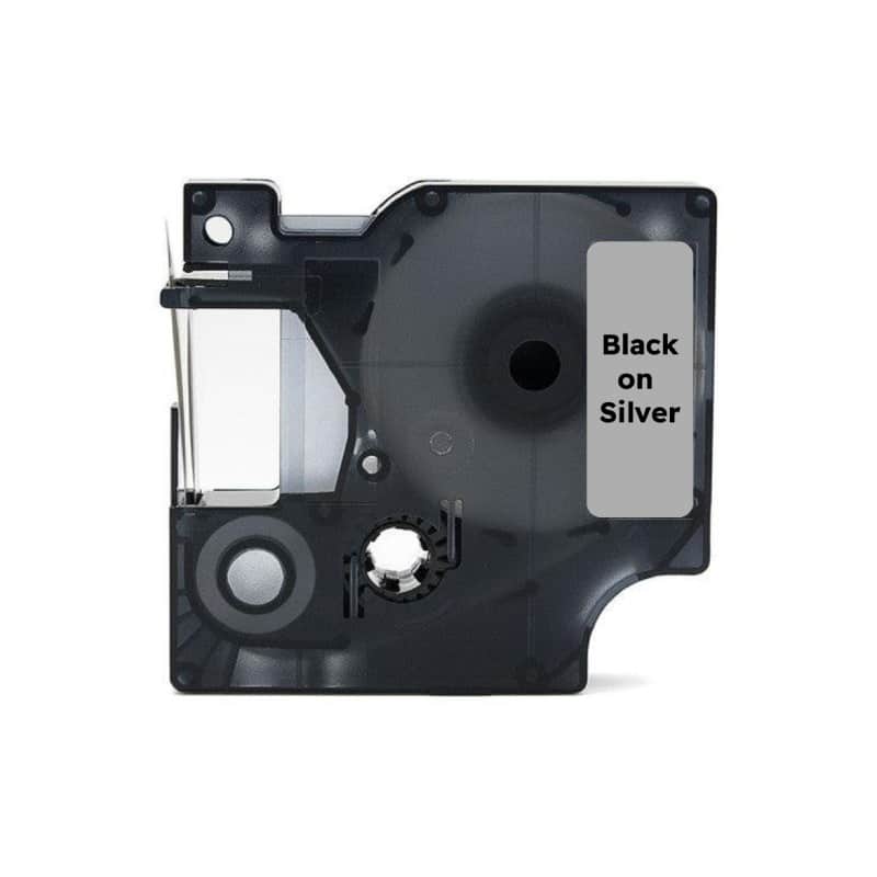 Dymo 53722 sort på sølv tape – Kompatibel S0721010 – 24mm x 7m passer til: LabelMANAGER 120P | LabelMANAGER 210D | LabelMANAGER 220P | LabelMANAGER 350D | LabelMANAGER 420P | LabelMANAGER 450 Duo | LabelMANAGER 500TS | LabelMANAGER PC | LabelMANAGER PC 2