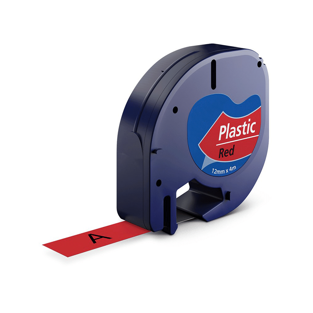 Dymo 91203 | 91223 sort på rød tape – Kompatibel S0721630 – 12 mm x 4 m passer til: Dymo LetraTag 2000 | Dymo LetraTag 200B | Dymo LetraTag LT 100 | Dymo LetraTag QX 50 | Dymo LetraTag XM | Dymo LetraTag XR