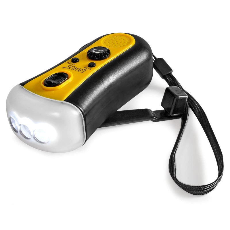 Eaxus LED dynamo lommelygte med FM radio er den perfekte ledsager til både friluftsentusiaster og husholdninger.