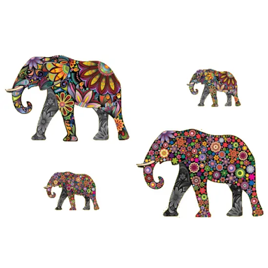 Flot wallsticker med 4 stk meget dekorative og farverige blomsterelefanter.
