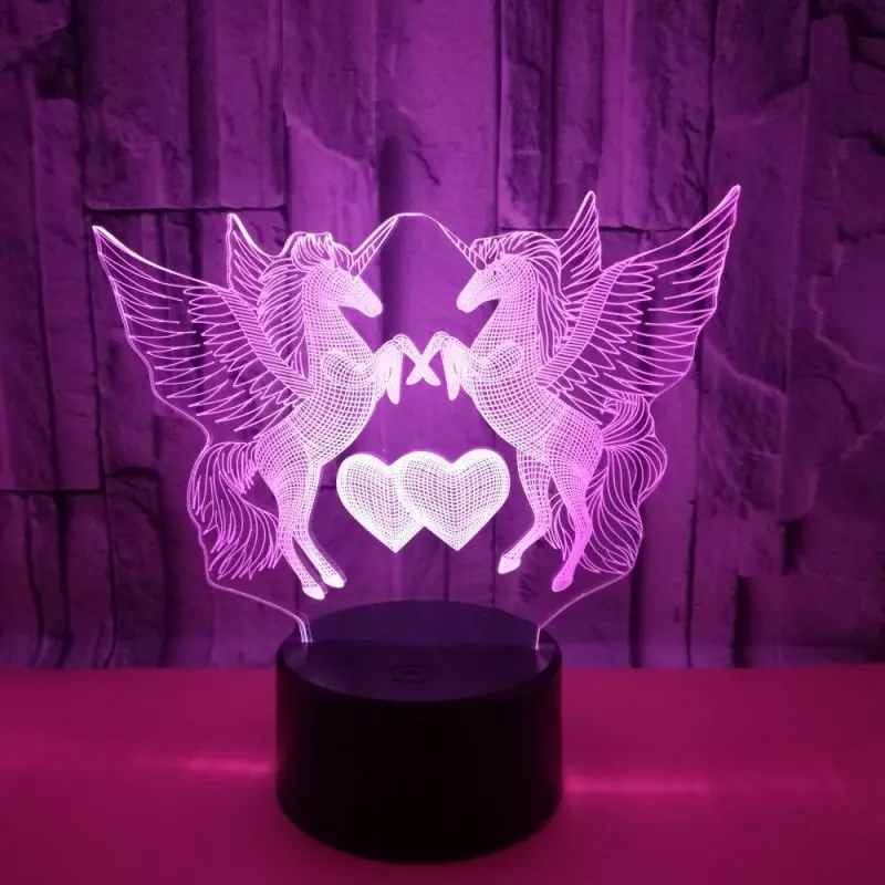 Rigtig flot og sød Enhjørninger og kærlighed 3D lampe med farveskift mellem 7 farver.