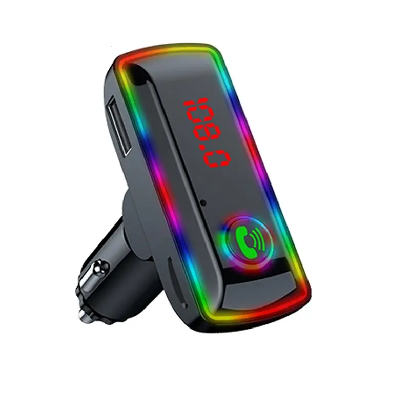 Multifunktionel bluetooth FM-transmitter med praktisk LED skærm og cool lys, så du skiller dig lidt ud fra mængden.