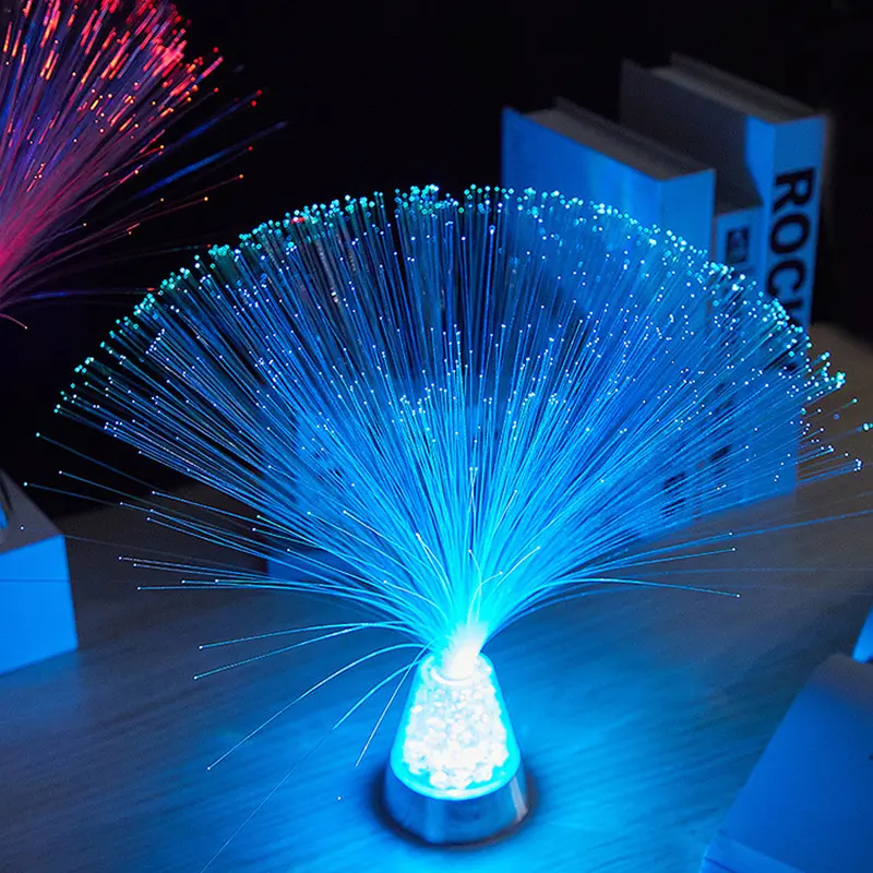 Flot farverig dekorativ fiberoptisk lampe med farveskift imellem 7 farver på hele 32 cm.