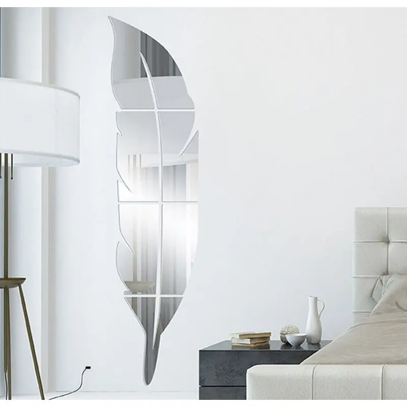 Flot spejl med en stor fjer som selvklæbende akryl spejl klistermærke.