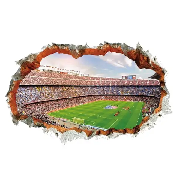Rigtig sej og flot fodboldstadion wallsticker med et prægtigt fodboldstadion på den anden side af et hul i væggen.