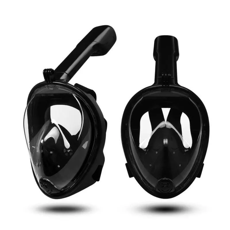 Full Face Dykkermaske med snorkel samt holder til aktivitetskamera i sort.