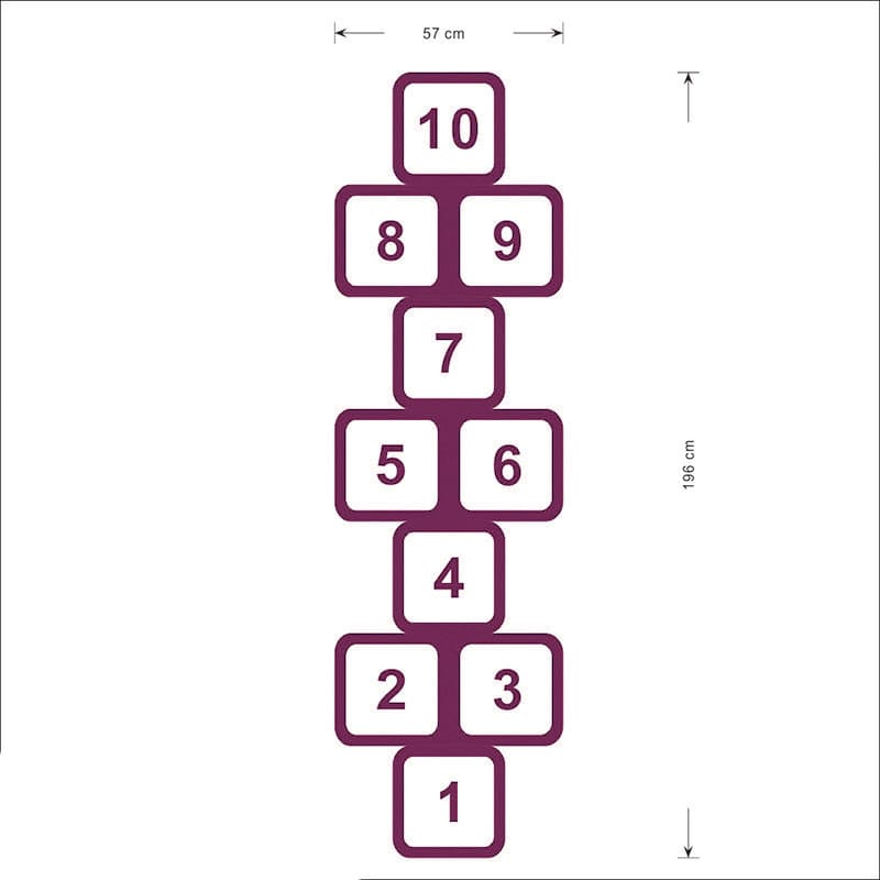 Fantastisk flot floorsticker som hinkerude i en flot lilla farve, til leg, bevægelse og indendørs aktivitet.