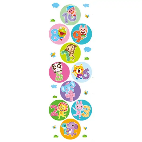 Rigtig sjov, dekorativ og farverig hinkerude floorsticker med en hel masse søde, nuttede og flotte dyr.
