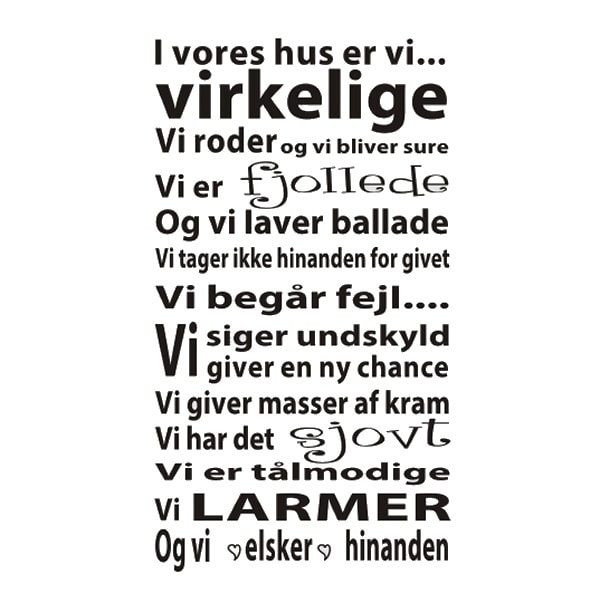 Flot og dekorativ wallsticker, som fortæller hvordan I er, hjemme hos Jer.