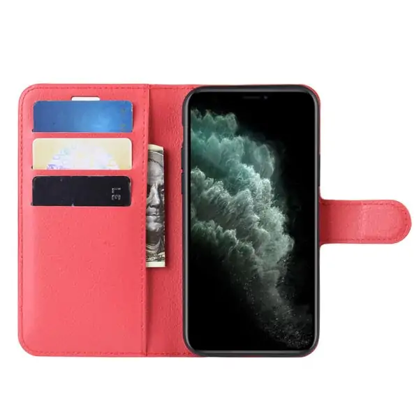 iPhone 12 / 12 Pro cover & stander med kreditkortholder. Rød –