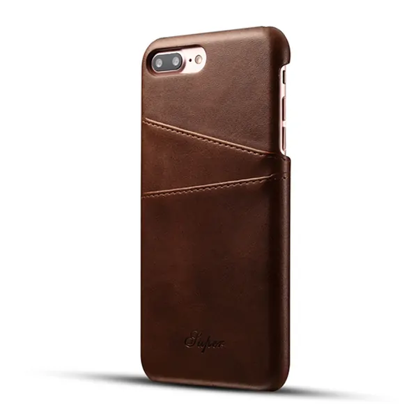 Rigtig lækkert brunt PU læder bagcover i flot design med indbygget kreditkortholder.