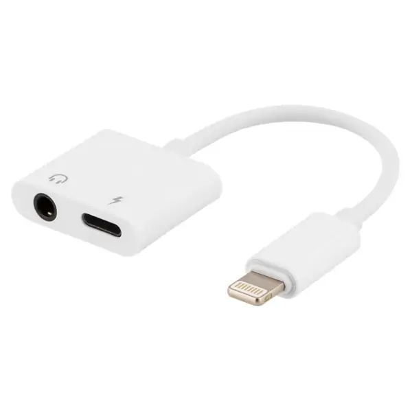 iPhone lightning earphone kabel adapter. Opladning og høretelefon 3.5mm mini-jack adapter.