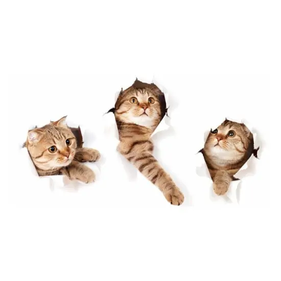 Rigtig sød katte wallsticker med tre killinger på vej igennem væggen.