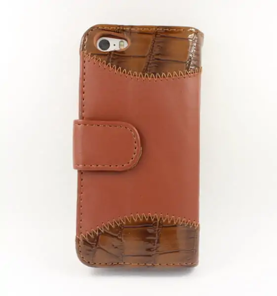 Læder cover/kreditkortholder i krokodille-look til iPhone 5.Brun –