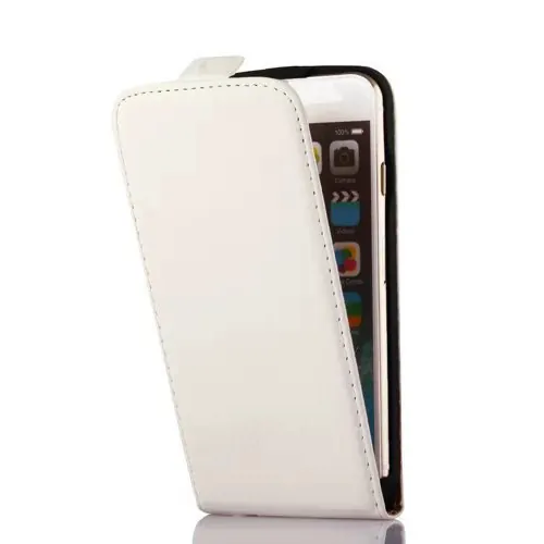 Læder top-flip cover til iPhone 6/6S. Hvid. –
