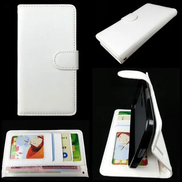 Rigtig flot og lækkert hvidt PU læder cover til iPhone 6 Plus / iPhone 6S Plus i flot design med indbygget kreditkortholder samt fotolomme.