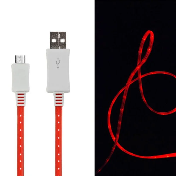 LED lysende USB-kabel til alle mobiler, der oplades via micro-USB-stik.