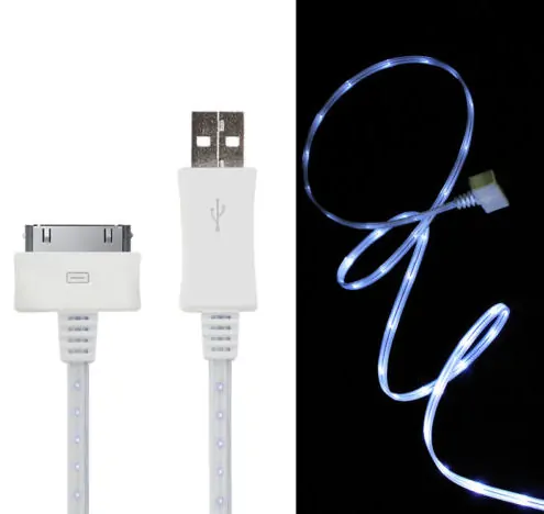 Hvidt LED kabel med sej lyseffekt når det tilsluttes computeren eller usb adapter.