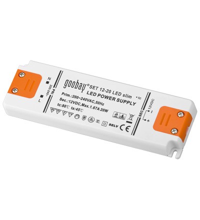LED strømforsyning, 12VDC, 20W slim, IP20 – KOZ
