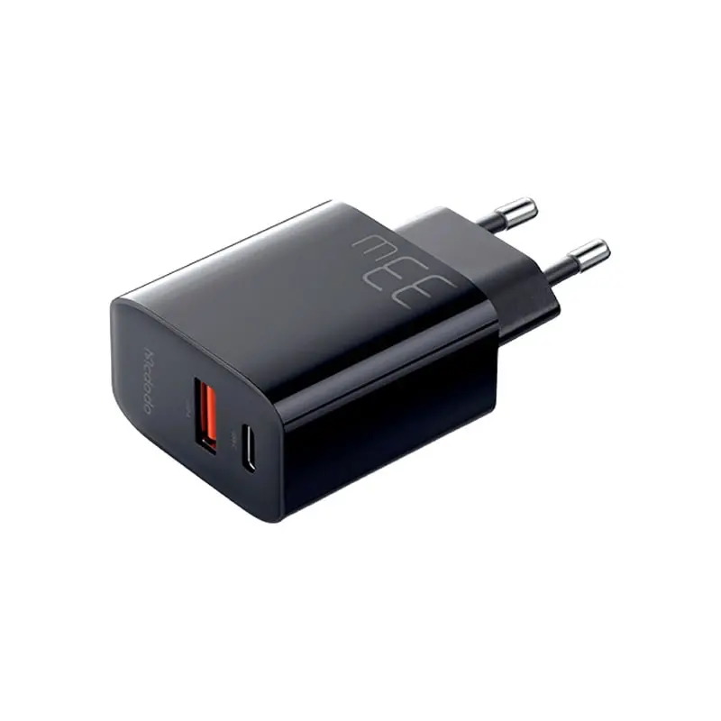 MCDODO Dual USB-C & USB-A oplader. PD 3.0 hurtigoplader. 33W. Sort.