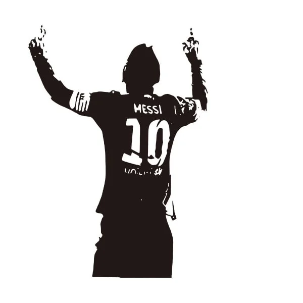 Flot fodboldwallsticker med Messi i en traditionel “tak til gud” for (endnu) en scoring.