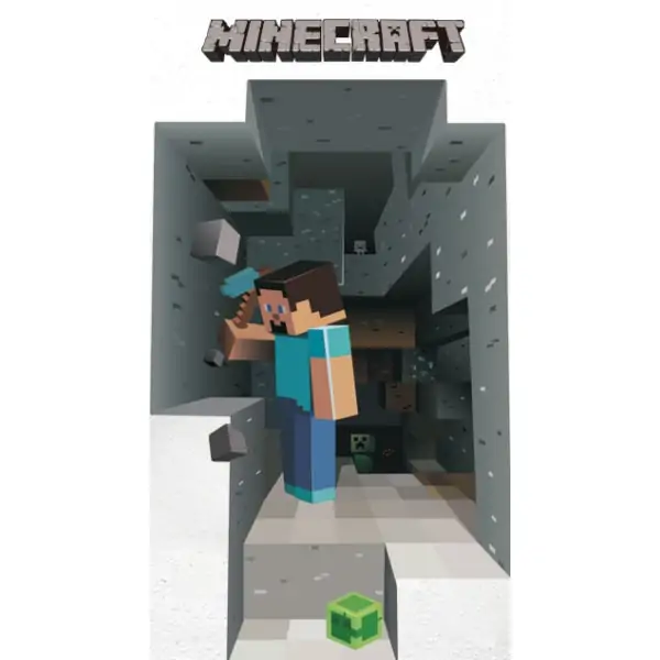 Rigtig sjov og kreativt designet Minecraft wallsticker med et 3D lignende “hul i væggen” med en aktiv minecrafter der er ved at bygge ud på værelset.