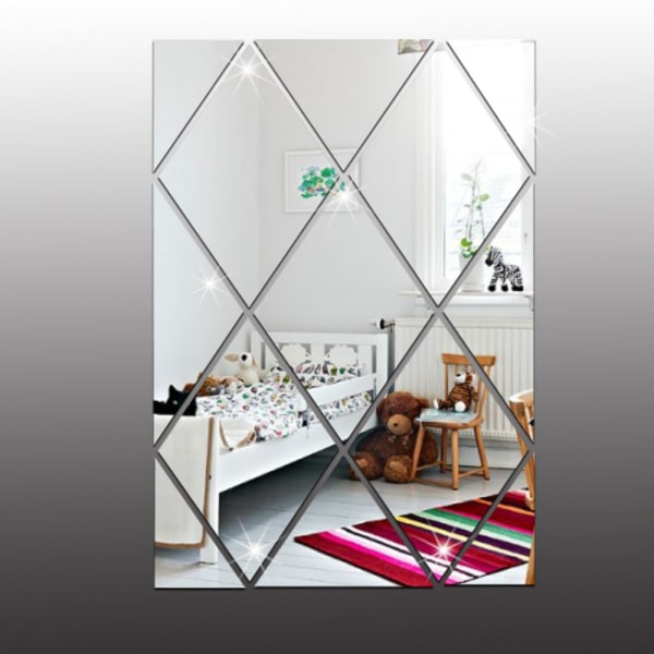 Elegant og flot diamant spejl wallsticker med diamant formede selvklæbende spejl folier, til at montere lige hvor det skal være – uden at skule bore 100 huller.