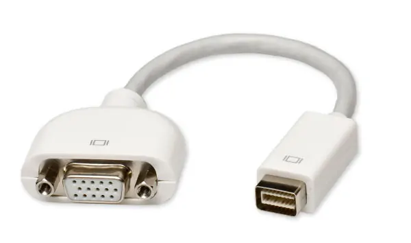 Adapteren har mini-DVI stik i den ene ende, og VGA udgang (hun-stik) i den anden.