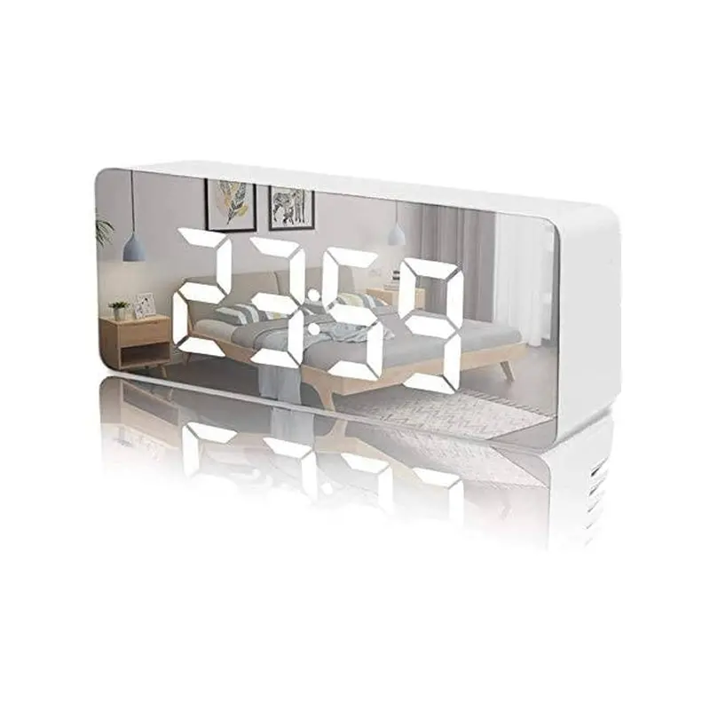 Smart multifunktionelt LED vækkeur med spejl, der bla kan bruges til makeup mm.