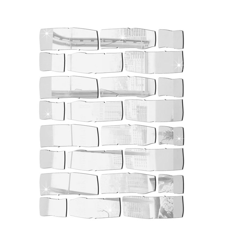 Murstensformede spejle i forskellige størrelser. Unik Spejl Murstensdekoration med 24 stk selvklæbende akryl spejl klistermærker.