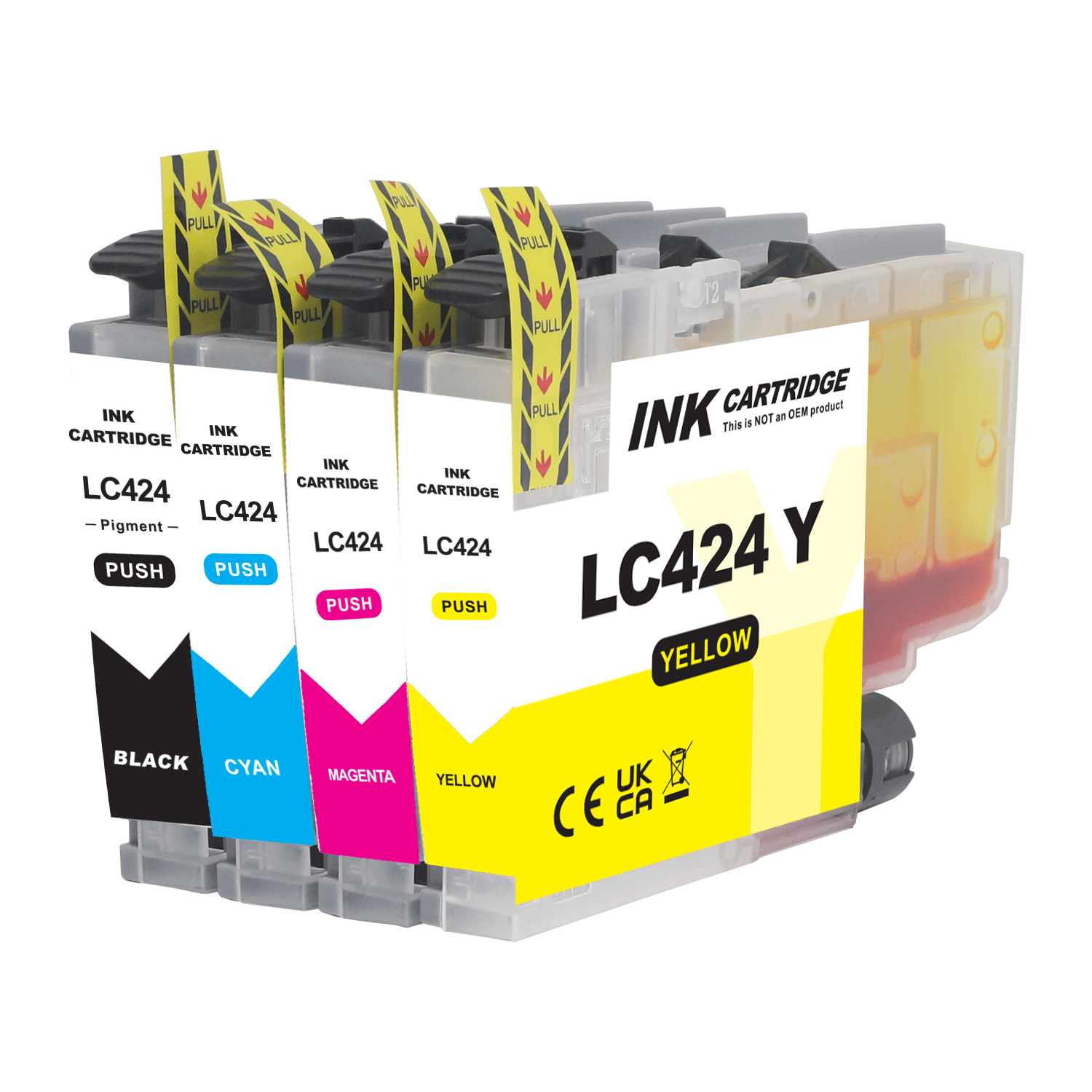 Dette sæt indeholder følgende1x LC424BK Sort, alternativ blækpatron1x LC424C Cyan, alternativ blækpatron1x LC424Y Yellow, alternativ blækpatron1x LC424M Magenta, alternativ blækpatron