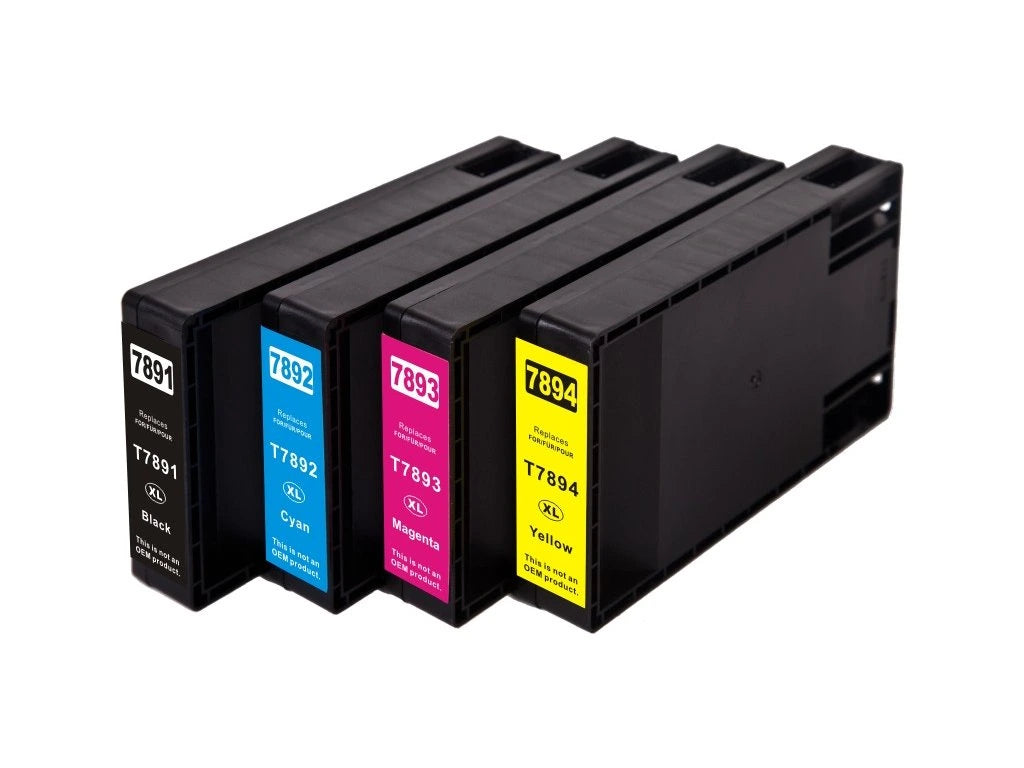 Dette sæt indeholder følgende1x Epson T7891XXL Sort, alternativ blækpatron1x Epson T7892XXL Cyan, alternativ blækpatron1x Epson T7893XXL Magenta, alternativ blækpatron1x Epson T7894XXL Yellow, alternativ blækpatron