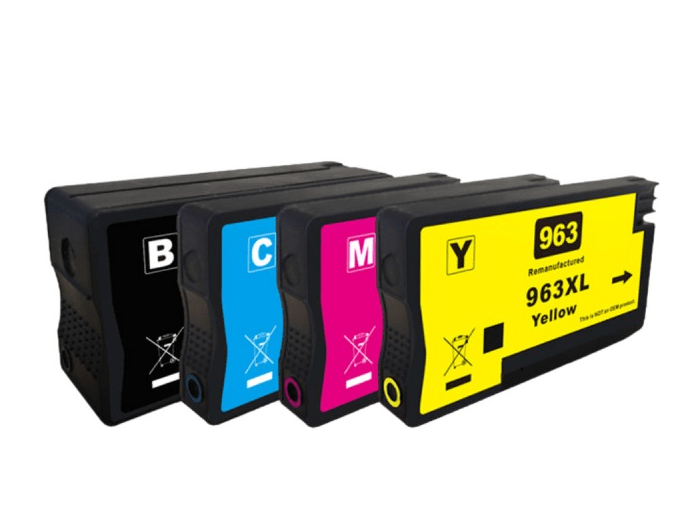 Dette sæt indeholder følgende1x HP 963 Sort, alternativ blækpatron1x HP 963 Cyan, alternativ blækpatron1x HP 963 Yellow, alternativ blækpatron1x HP 963 Magenta, alternativ blækpatron