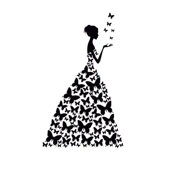 Virkelig flot og elegant sommerfugle wallsticker med en pige med sommerfuglekjole.