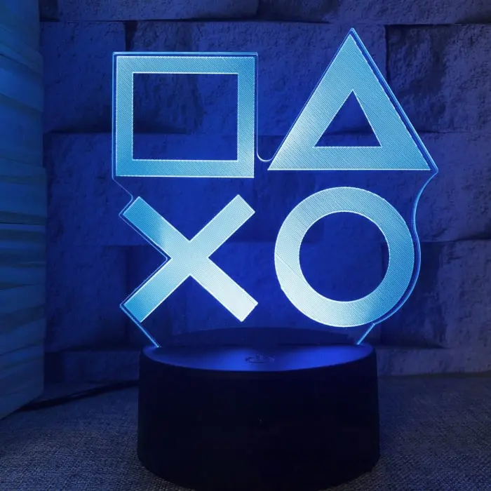 Rigtig flot PlayStation 3D lampe med seje lysende PlayStation taster. Farveskift mellem 7 farver.