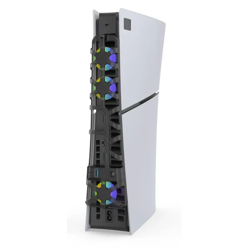 PlayStation 5 Slim USB køler med farvet RGB lys. DOBE PS5 Cooling Fan. Sort.